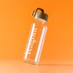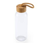 - bidon din sticlă 450ml cu capac din lemn de bambus și sfoară pentru agățare