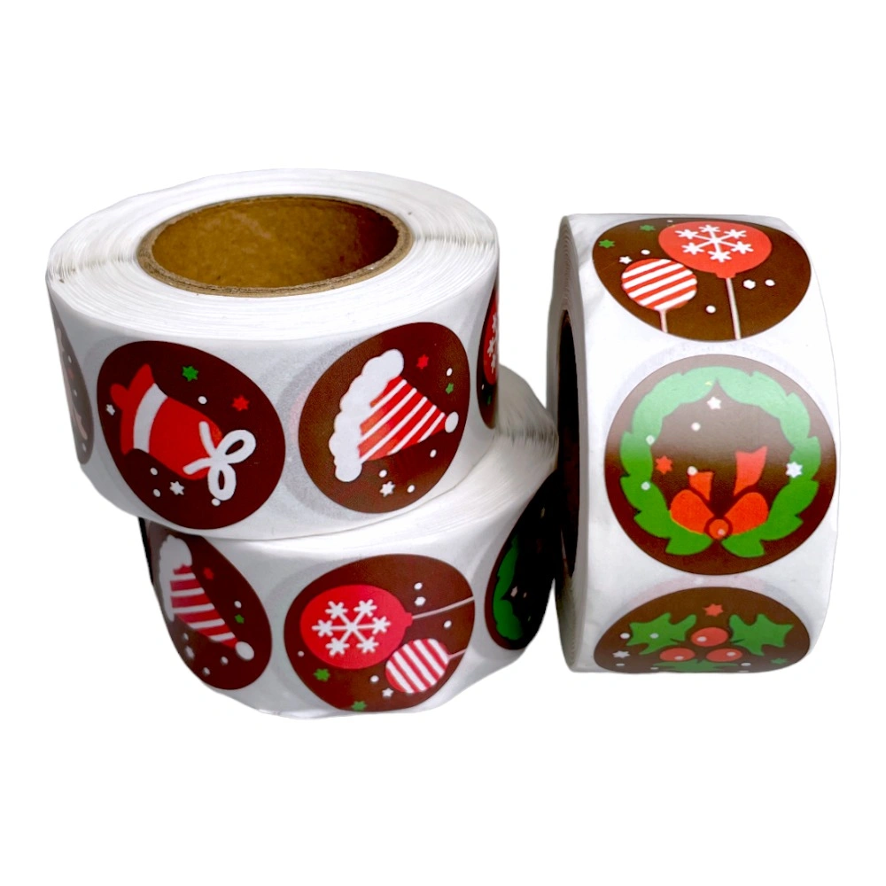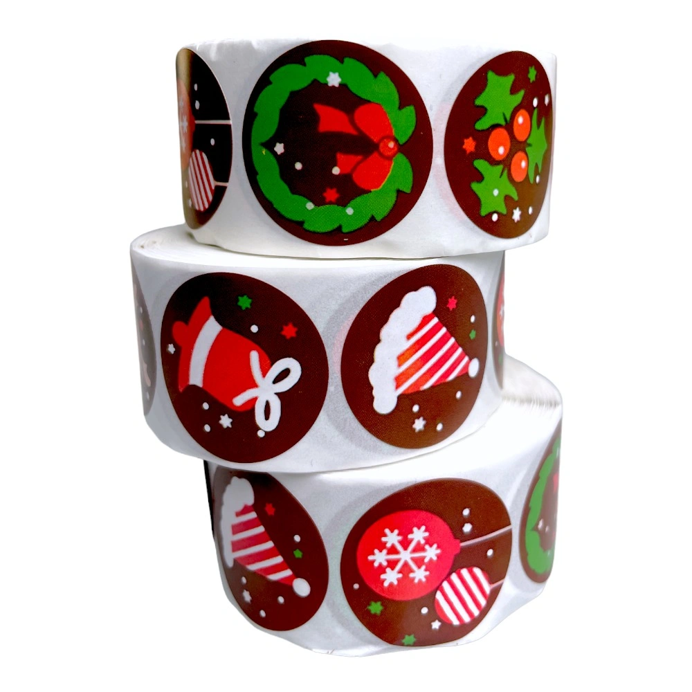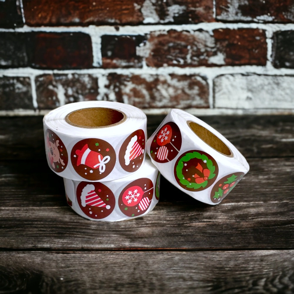 Rolă 500 stickere Crăciun 2.5cm – model 2 adaugă un element special oricărui proiect festiv.